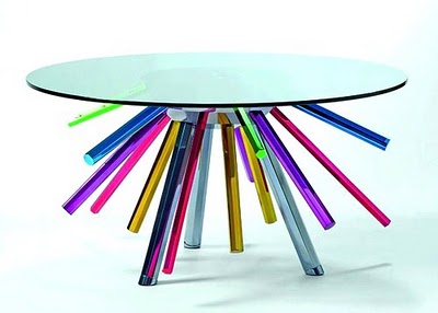 Versace’n pyöreän pöydät sojottavat yhtä villisti kuin ne on väritettykin.