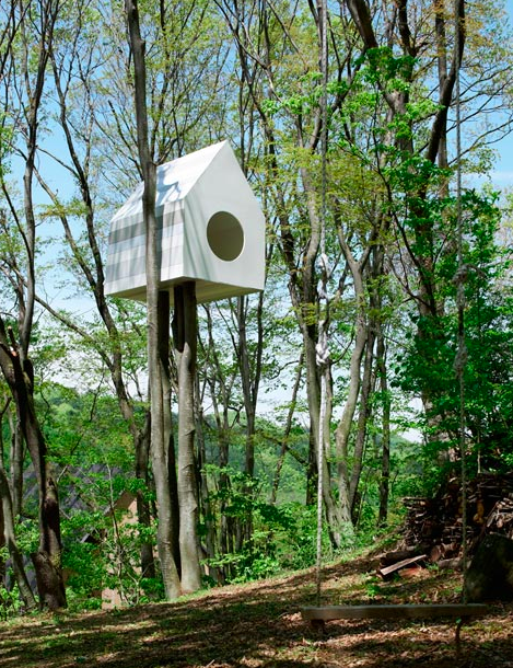 Japanilaisen Nendon jättimäinen linnunpesä imee ulommaiseen seinäänsä 78 lintupoikuetta. Toisella puolella olevasta majan isoimmasta aukosta mahtuu sisään muutama täyskasvuinen ihminen. Jännittävyyttä tuo sisältä löytyvä reikäseinä, josta voi bongailla siivekkäiden elämää niiden huomaamatta.