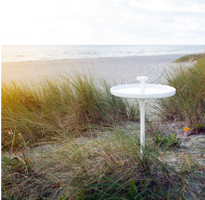 Andreas Engesvikin Pin -pöytä sopii melkein mihin maastoon tahansa. Kolmesta osasta koottava ulkokaluste on helppo kantaa mukana ja pystyttää, kun täydellinen juhlapaikka löytyy. Iske nastamaisen hauska pikkupöytä nurmeen ja kesän herkut pöydälle. Pöydälle mahtuvat söpösti vaikka alkumaljat tai cocktailpalat.