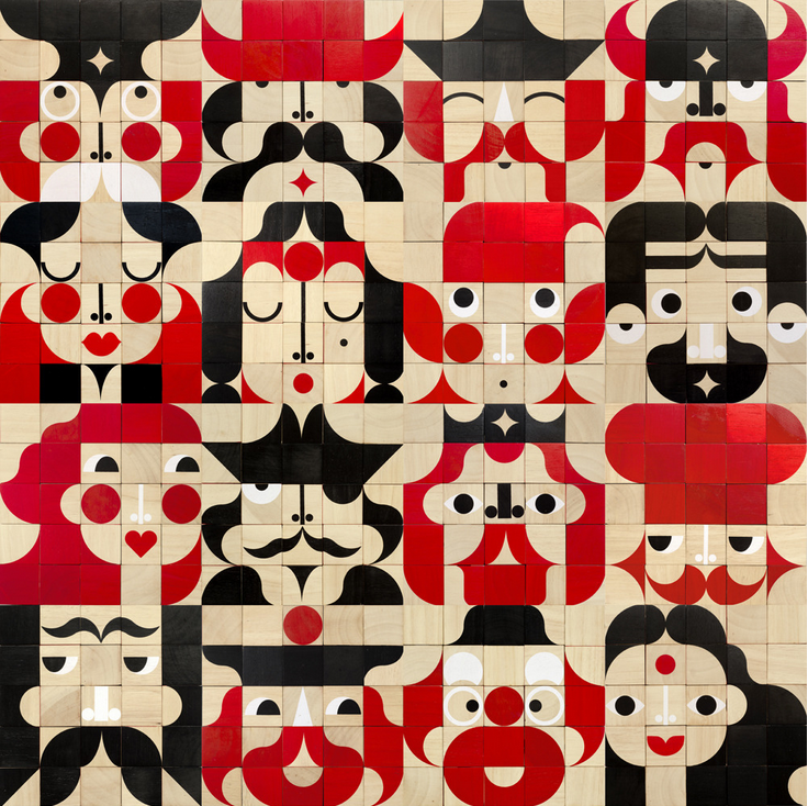 Syynä äkilliseen taantumiseeni on MillerGoodman-suunnittelijaparin nerokkaan yksinkertaiset designkuutiot. Puu-ukkoja taikova lahjakas pari on saanut minut lumoihinsa yksinkertaisillaan lelukuutioillaan. Mielikuvitukseni juoksee maratonia siksakkina ja älynystyrät miettivät erilaisia naamoja, uusia naamoja, lisää naamoja – ajatuskaan katkeamatta. Kulmikkaita naamoja, suunnikkaita naamoja. Pyöreitä viiksiä, puoliympyrästä suortuvia hiuskiehkuroita, rullalle kiertyviä viiksiä ja paksuja partoja. Pulleita poskia, pyöreitä huulia, hatun kartioita, kimurantteja korvia ja pikkuriikkisiä sieraimia.