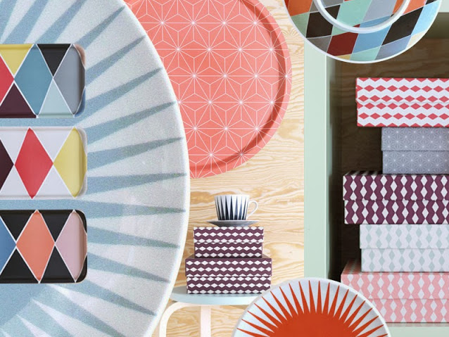 Eikukä mikäköhä häh? Tarkkasilmäisimmät bongaavatkin pastellisen, hieman klassikkoa luihumman jälijtelmän mallistosta. Ei hullumpi toteutus. Oma katse sen sijaan pysähtyy hillittyihin harlekiinikuvioihin tyynyliinoissa ja säilytyslaatikoissa. Murretut värit ja tiukat muodot ovat samalla hienostuneita mutta arkisia. Pyöreät laatikot sopisivat mahtavasti piristämään meidän mustilla laatikoilla ja pölyllä ankeuttaan hehkuvaa vaatekaapin päällystää. Keittiökin pitäisi pukea uusiin pyyhkeisiin pian.