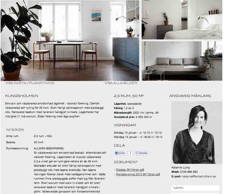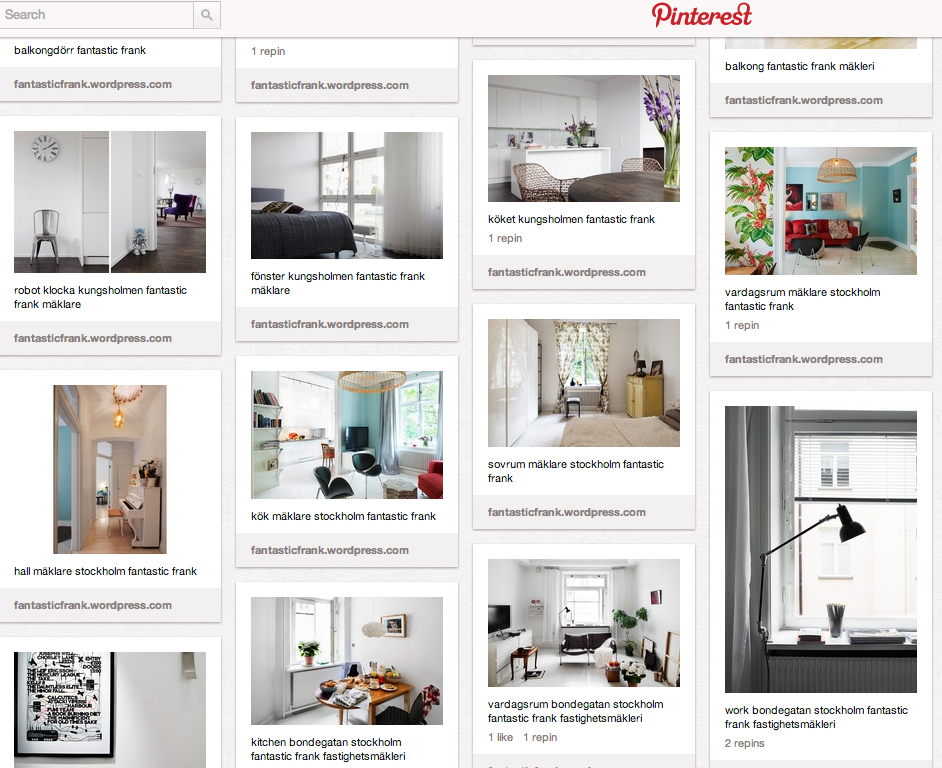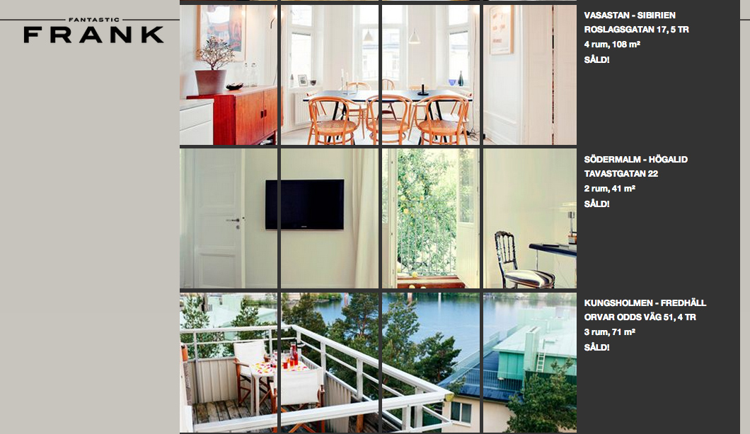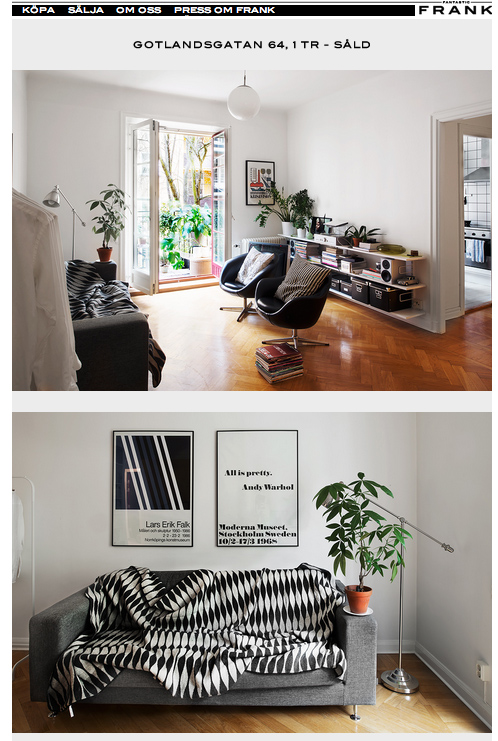 Fantastic Frank jakaa sisustustunnelmaa monipuolisesti myös sosiaalisessa mediassa (Instagram, Facebook, Pinterest, kaikkialta maailmasta sisutusideoita ammentava It’s all about you -sisustusblogi). Kiinteistövälittäjän työ saa uusia merkityksiä myös Frankin Kontorsbloggen -blogissa, joka on muuten Ruotsin 19:ksi luetuin sisustusblogi. Wau!