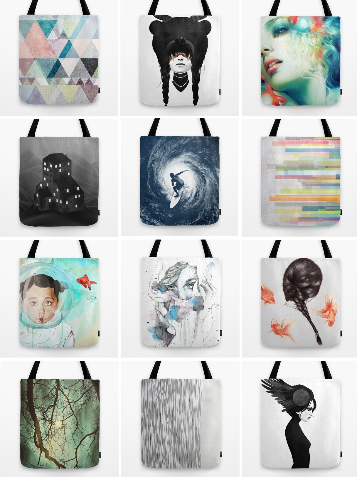 Vaikka sekoaisit kuvasivustosta yhtä paljon kuin minä ja pennosia löytyisi kukkaron pohjalta, kaikkia seiniä ei tauluilla tarvi tapetoida. Society6 nimittäin tarjoaa samoja kuvia muillekin pinnoille: tyynyjä, kännykän kuoria, suihkuverhoja ja mattoja, t-paitoja, potkuhousuja, laukkuja, kelloja, mukeja ja kortteja.