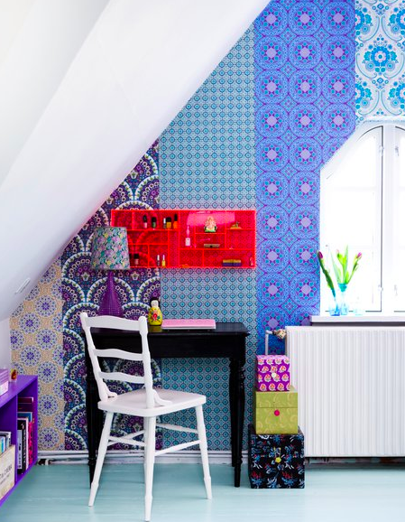 Retro Villan 2000-luvulle säilyneiden kuviokarnevaalien käyttö tulisikin sallia vain parhaan värisilmän ja muotokielen sisustajille. Komeitahan nuo ovat, mutta vaativat piirun verran enemmän harkintaa kuin se harmaa-valkoinen haituvajälki, huomaamaton antiikkilaaastijäljitelmä tai vieno pastelliraita. Uskaliain liisteröijä saa persoonallisimman kodin.