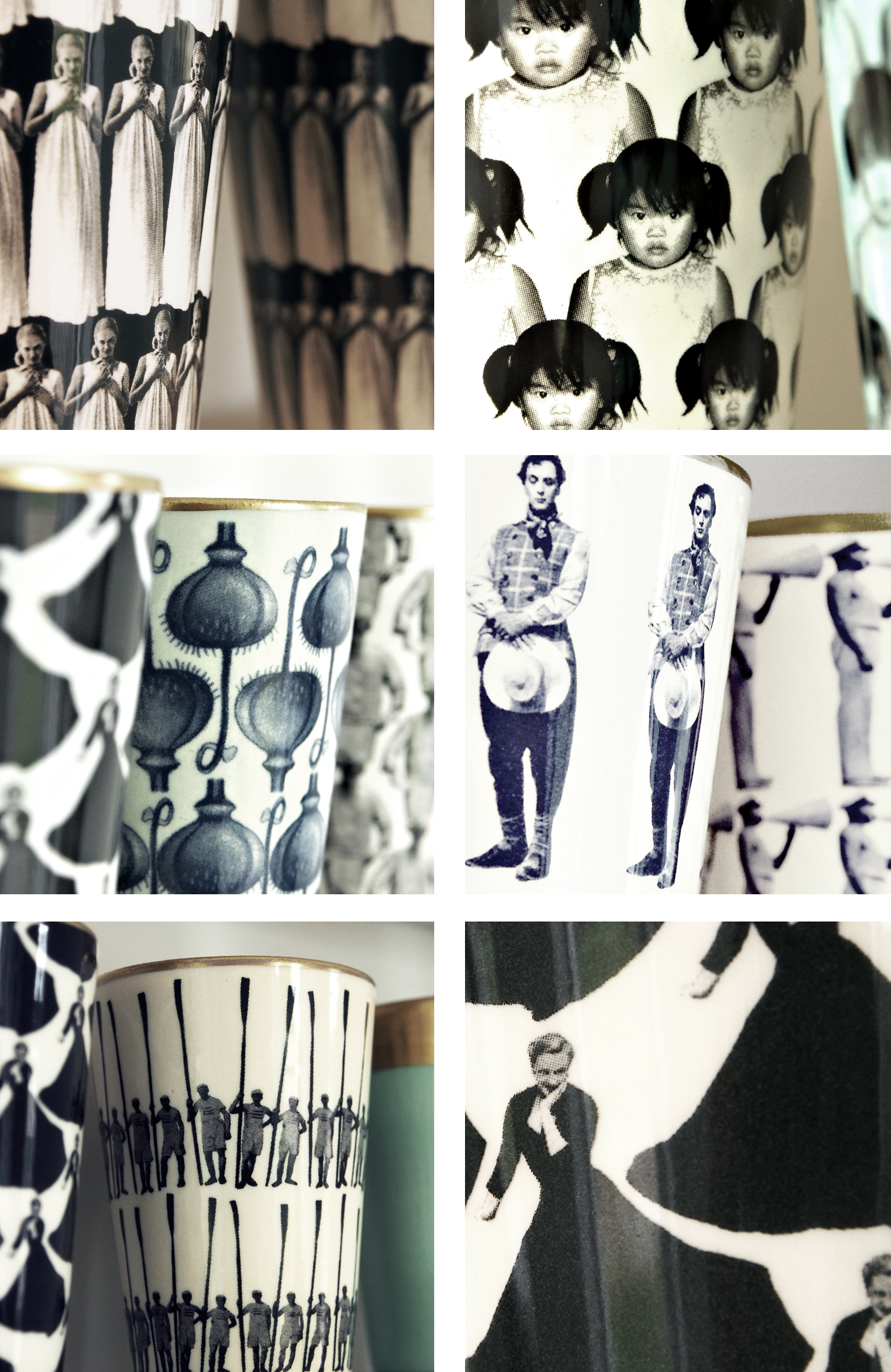 Arabiallakin aikoinaan työskennelleen keraamikon käden jälki on tunnistettava – ja varsinkin silloin, kun sitä tarkastelee lähempää. Nehän on siirtokuvia! Kuvia, jotka erottaa vasta kahvikuppietäisyydellä. Ei vitriinistä, netistä. Ei edes ujosti kaukaa kurkistellen.