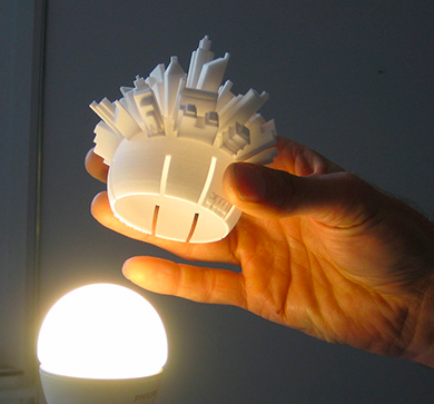 En tiedä, millaisista univaikeuksista kärsii David Graas, mutta joskus ehkä hänkin on yöllä avannut silmänsä ihastuakseen suurkaupungin kajoon. 3D-printtaustekniikalla toteutettu Huddle-lamppu antaa mahdollisuuden tarkkailla kaupungin hehkua toisesta kulmasta.